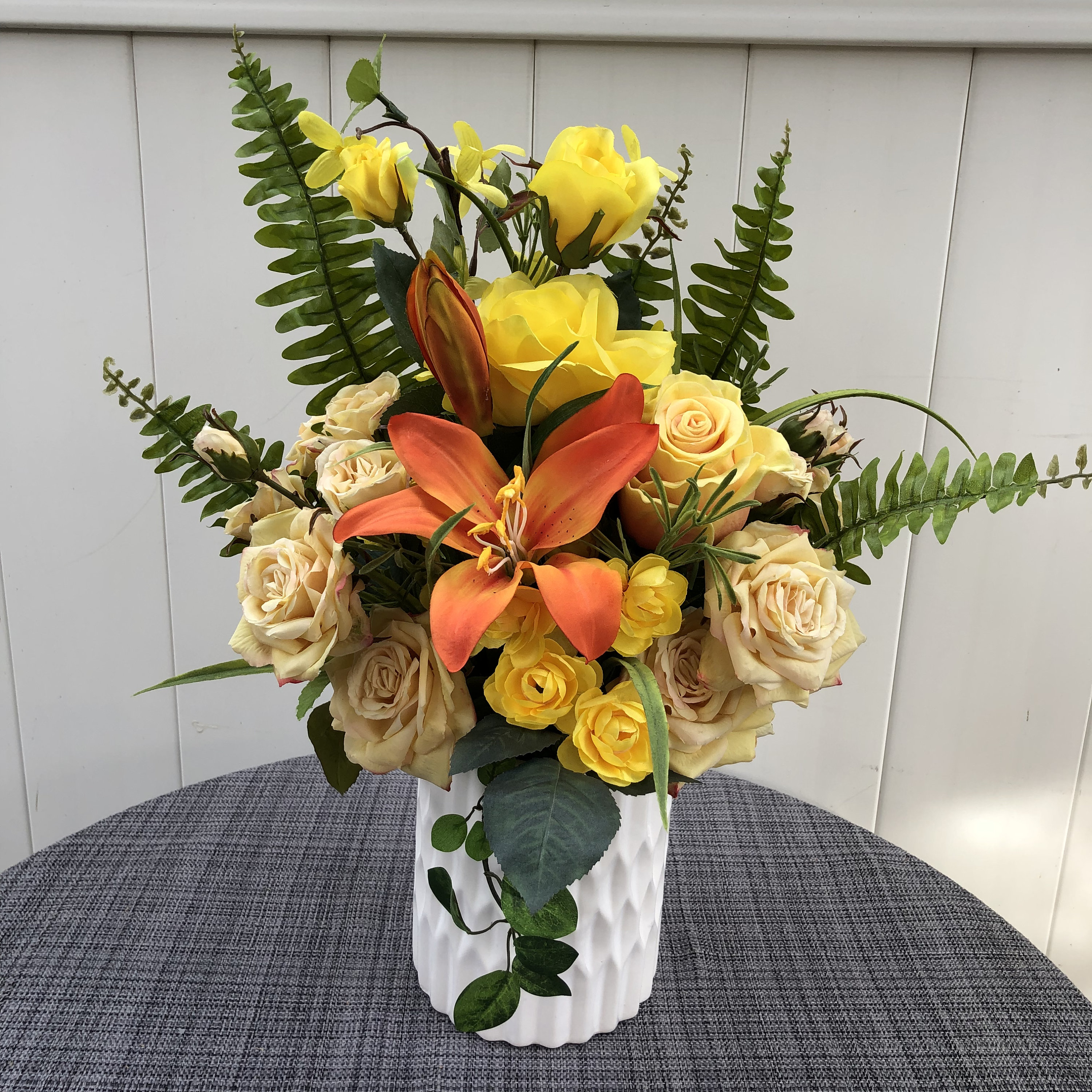 Yellow Roses Arrangement Faux Silk Flower Arrangement Spring Etsy